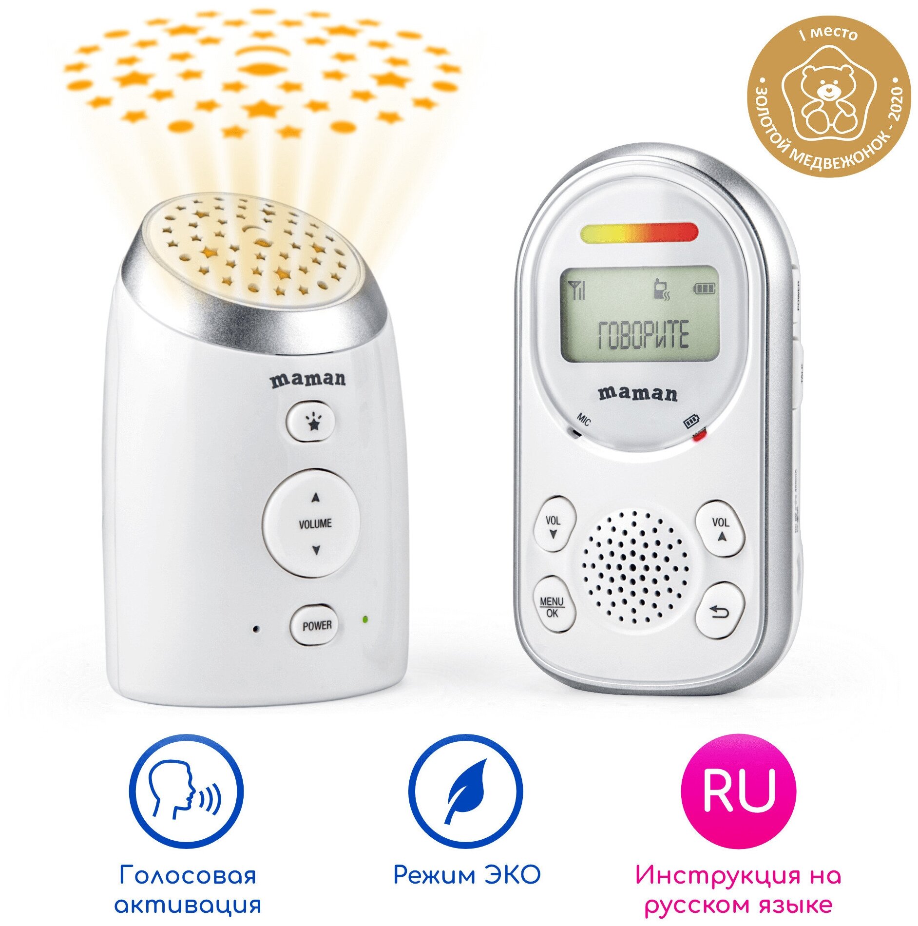 Лучшие цены. Радионяня Maman DM223 – ваш надежный помощник в заботе о малыше. Использование цифровых технологий обеспечивает звук высшего качества и дает уверенность, что вы всегда услышите вашего ребенка. Встроенный в детский блок ночник-проектор «Звездное небо» отображает на потолке россыпь звезд, а колыбельные мелодии помогают малышу успокоиться и заснуть. Контролируйте температуру в комнате благодаря наличию сенсорного датчика для ее измерения. Для вашего удобства имеется зажим для крепления на поясе или одежде. Магазины в вашем городе.