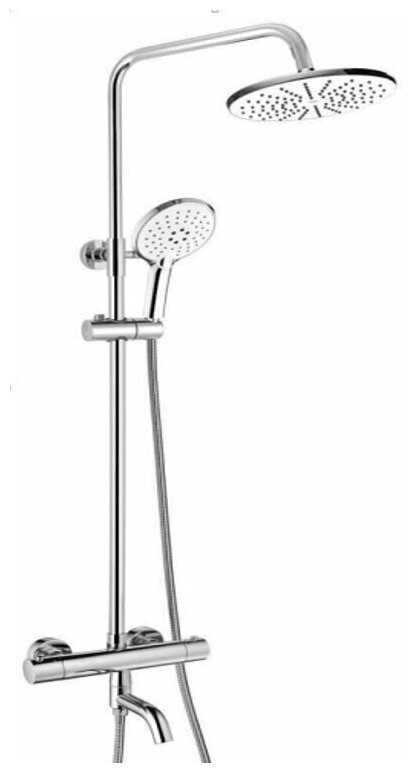 Лучшие цены. Душевая система Laguraty 17050. Технические характеристики: - Цвет: хром. - Поверхность: глянцевая. - Материал: латунь. - Стандарт подводки: G 1/2. - Диаметр верхнего душа: 21,5 см. - Вылет верхнего душа: 42 см. - Форма верхнего душа: круглая. - Форма ручного душа: круглая. - Диаметр ручного душа: 13 см. - Ручной душ с тремя режимами струи. - Излив: поворотный. - Механизм: керамический картридж. - Длина шланга: 150 см. - Исполнение шланга: металл. - С регулировкой по высоте. - Управление: термостат. Магазины в вашем городе.