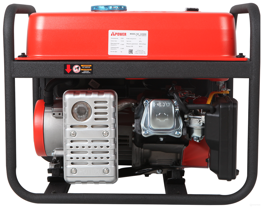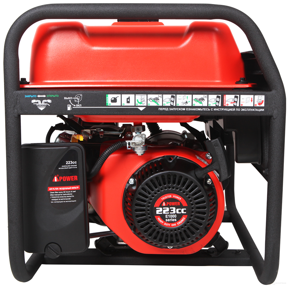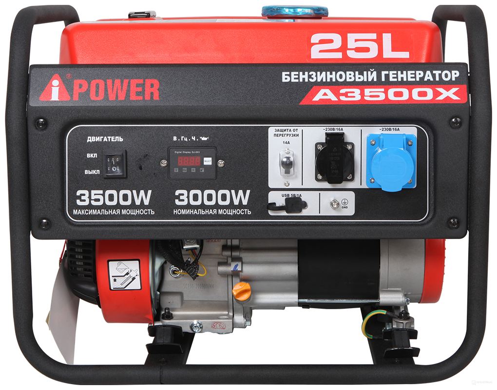 Лучшие цены. Бензиновый генератор A-iPower A3500X - надежным источником питания при отсутствии электроэнергии. Этот генератор с максимальной мощностью 3500 Вт и номинальной мощностью 3000 Вт работает до 14 часов при 100% нагрузке. A-iPower A3500X оснащен компактным гильзованным 4-тактный OHV-двигателем объемом 223 куб. см с ручным стартером. На панели управления находится одна стандартная розетка 230В/16А, одна силовая розетка 230В/16А, и разъем USB, от которого можно подзарядить смартфон, планшет и другие гаджеты. Магазины в вашем городе.