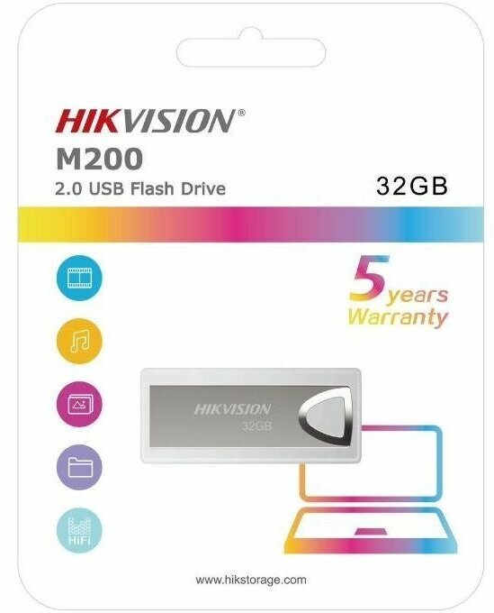 Флешка Hikvision M200 USB 2.0 32 ГБ, серебристый