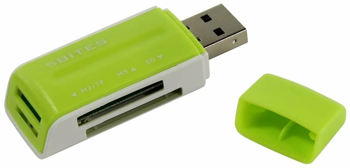 Картридеры и USB-хабы Устройство ч/з карт памяти 5bites Re2-102gr USB2.0 / All-in-one / USB Plug / Green Re2-102gr