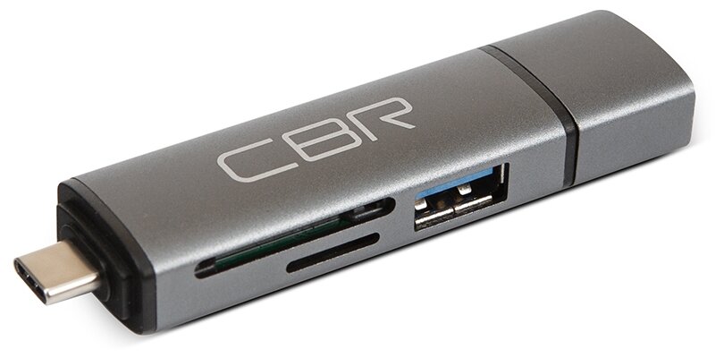 Картридер / USB-хаб Cbr USB Type-C USB 3.0 2 в 1 Card reader Gear, до 5 Гбит с, microSD T-Flash SD SDHC SDXC, доп.выход USB 3.0 хаб, поддержка OTG, алюминиевый корпус