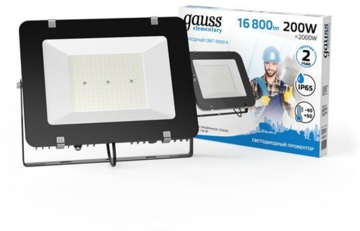 Прожектор Gauss Elementary 200W 16800lm IP65 6500K, черный