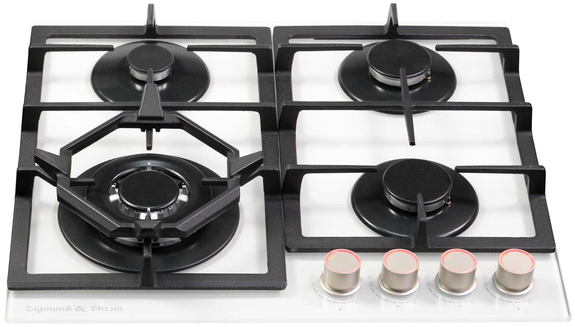 Лучшие цены. Газовая варочная панель Zigmund & Shtain MN 199.61 W Особенности: Рабочий стол: закалённое стекло Фронтальное управление Поворотные переключатели Тройное кольцо пламени Электроподжиг в каждой ручке Газ-контроль Решетки: чугунные Матовые колпачки горелок Переходники для разных типов газа: для газа G30/30mbar в комплекте Мощность конфорок: 1 WOK-конфорка: 3400 Вт 2 конфорки: 1880 Вт 1 конфорка: 950 Вт Характеристики: Габариты (ШхГ): 58х52 см Размеры ниши для встраивания (ШхГ). Магазины в вашем городе.