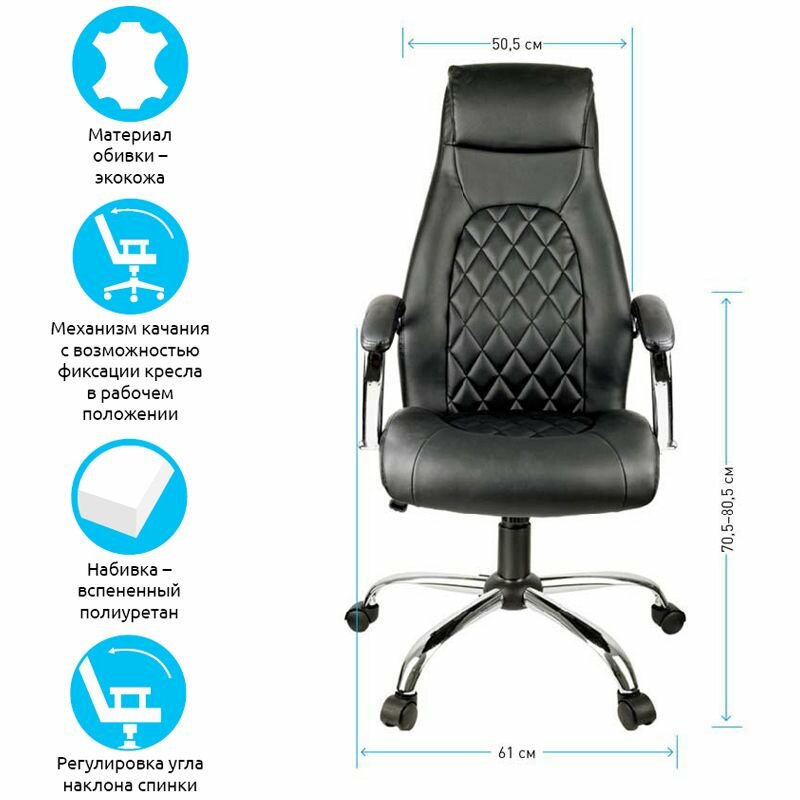 Кресло руководителя Helmi "Iсon", экокожа черная, хром (283164)