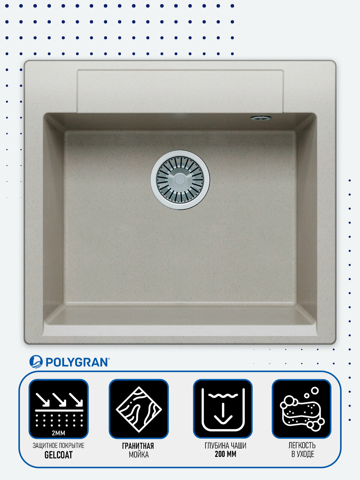 Мойки Polygran ARGO-560, мойка, мрамор, песочный 302