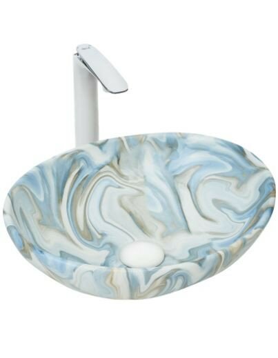 Умывальник Раковина WeltWasser WW SK ELBACH 3078 M814 накладная мрамор белая с голубым и серым.