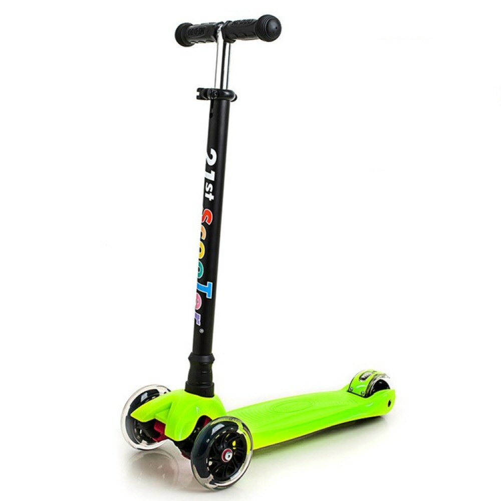 Самокат Трёхколёсный самокат 21st Scooter Maxi RO203M-3 со светящимися колёсами Салатовый