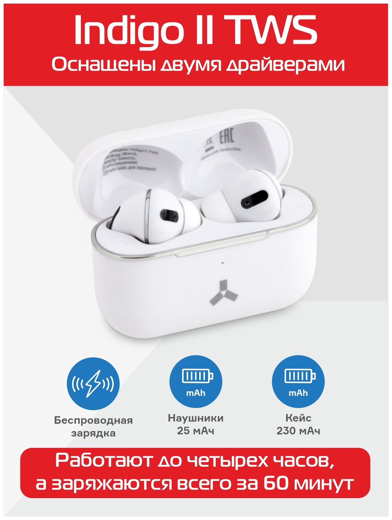 Наушники Accesstyle Indigo II TWS, Bluetooth, внутриканальные, белый indigo ii tws white