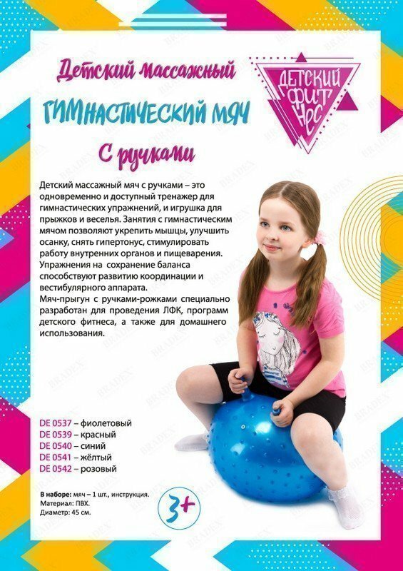 Мяч для фитнеса / фитбол Детский массажный гимнастический мяч, фиолетовый DE 0537 BRADEX