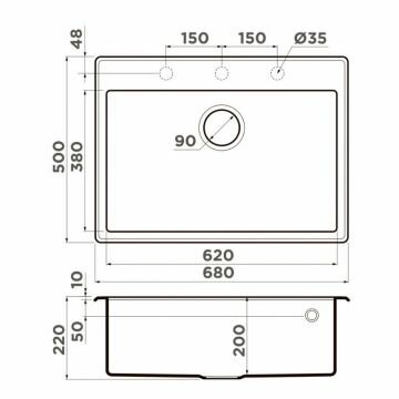 Врезная кухонная мойка 68 см, OMOIKIRI Tedori 68, матовое эверест