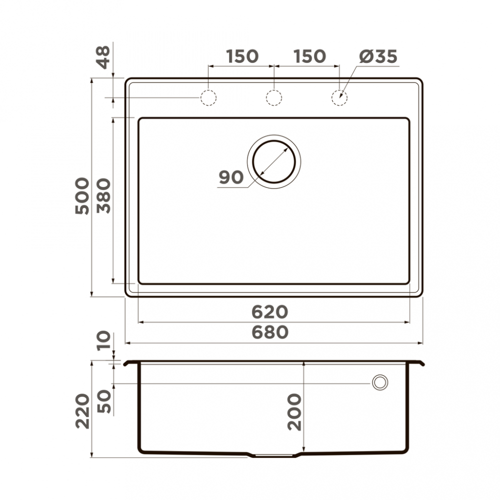 Врезная кухонная мойка 68 см, OMOIKIRI Tedori 68, матовое эверест