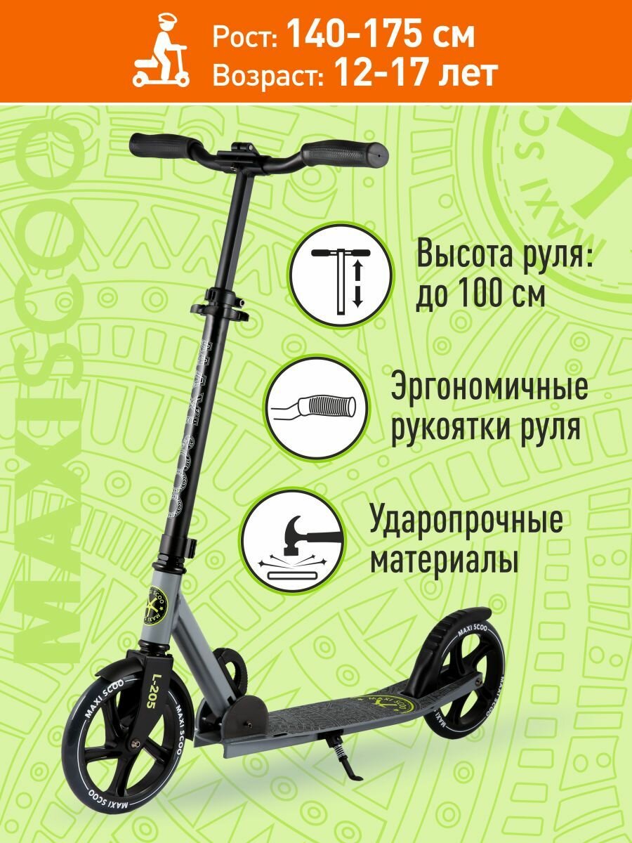 Самокат MAXISCOO L-205 (серый) MSC-L205-G