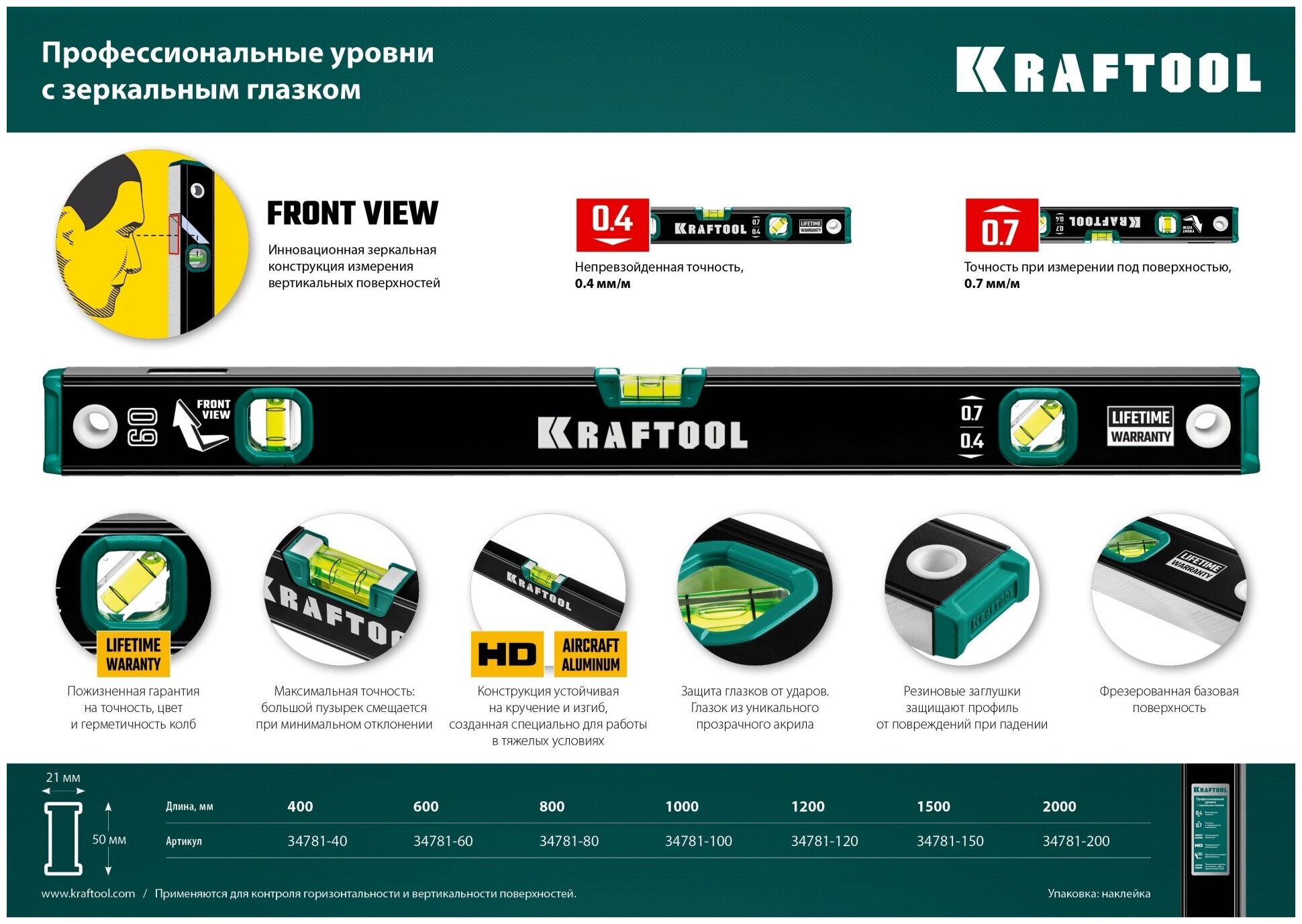 Уровень / правило Уровень с зеркальным глазком Kraftool 34781-200 2000 мм