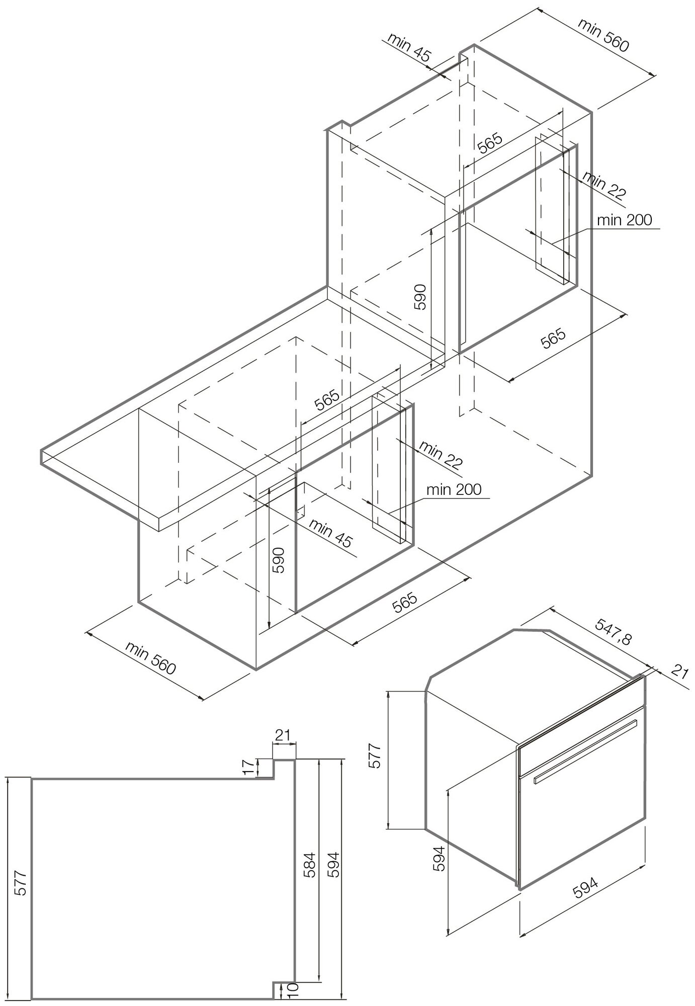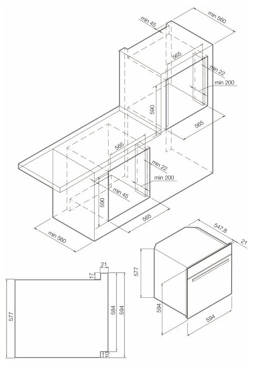 | Размеры для встраивания (ВхШхГ) | 590x565x560 мм |