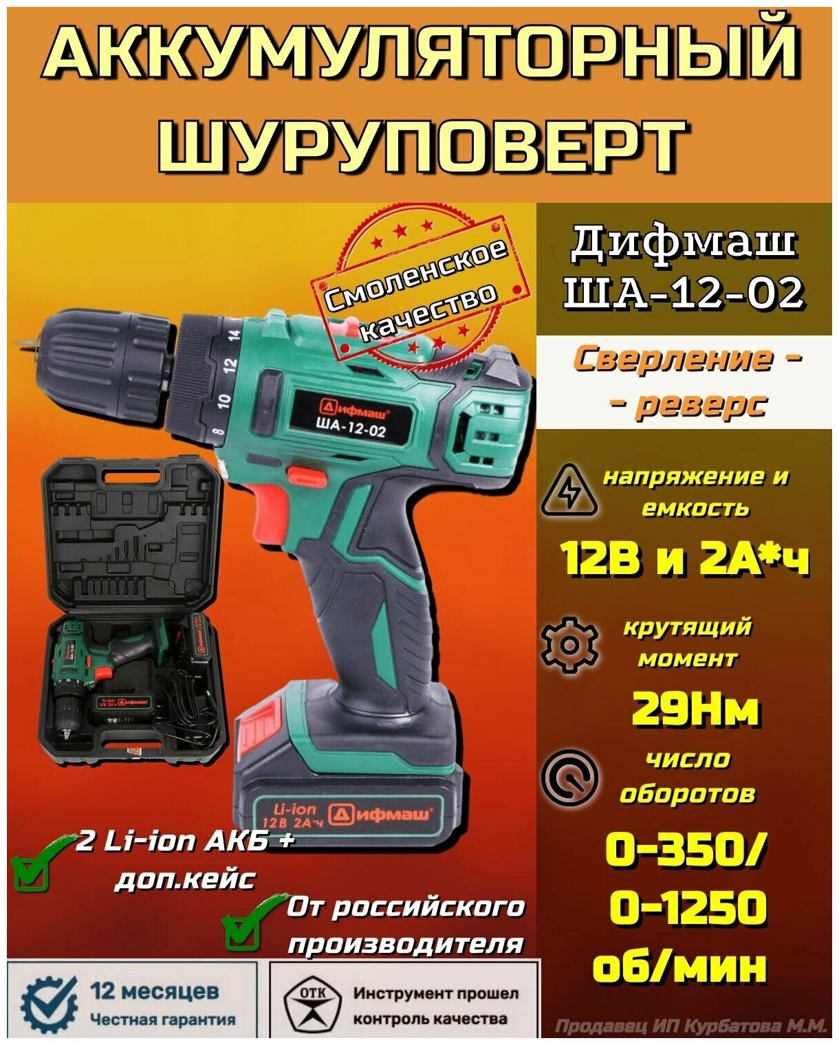 Аккумуляторная дрель-шуруповерт дифмаш ША-12-02