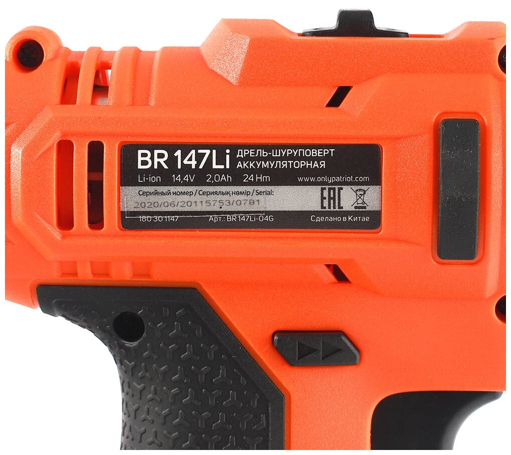 Дрель-шуруповерт PATRIOT 180301147 BR 147Li аккумуляторная, 0-1350 об/мин, оранжевый/черный