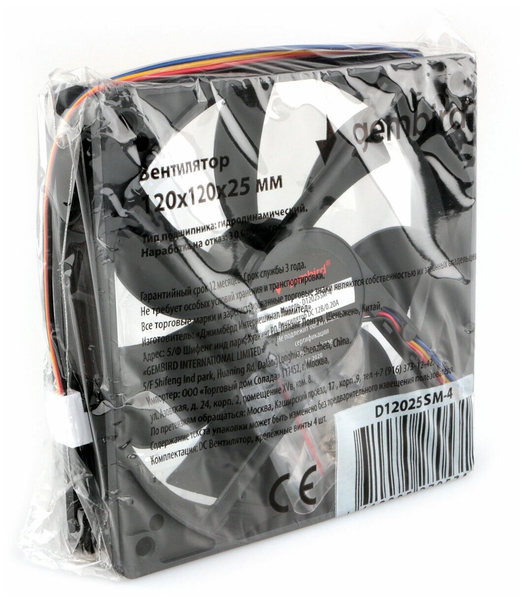 Системы охлаждения Gembird Вентилятор для корпуса 120x120x25, втулка, 4 pin, провод 30 см (d12025sm-4) .