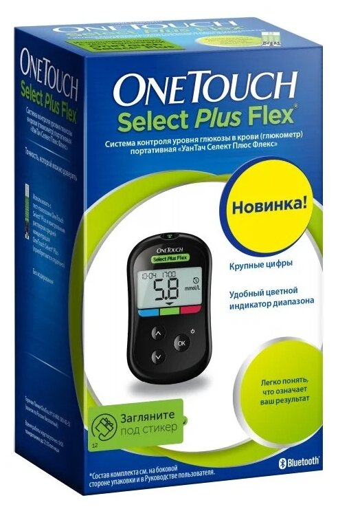 Лучшие цены. Глюкометр OneTouch Select Plus Flex® подойдет людям с сахарным диабетом, кому нужен простой прибор. • Цветовые подсказки, которые дают сигнал, что уровень глюкозы высокий или низкий • Простая процедура тестирования • Экран с крупными цифрами • Память на 500 измерений. Магазины в вашем городе.
