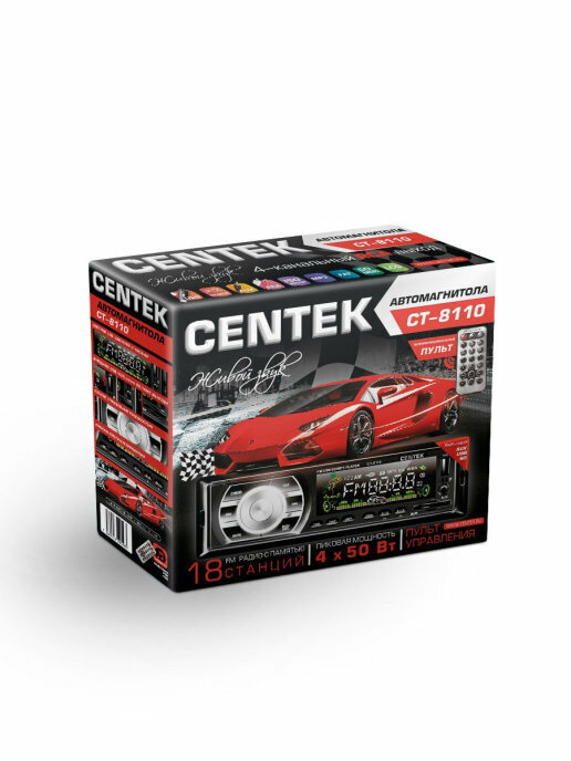 Centek Автомагнитола 4х50 Вт пульт, SD/MMC/USB, MP3, цветной LED, память 18 станций CT-8110