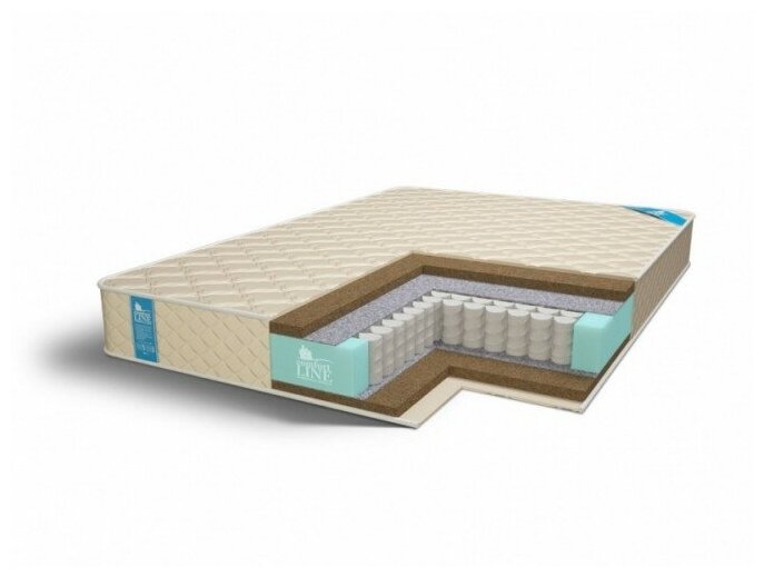 Лучшие цены. Матрас жесткий с обеих сторон. Природный материал латексированная кокосовая койра не вызывает аллергических реакций и добавляет необходимые жесткость и упругость матрасу. Независимый пружинный блок "TFK" (512 пружин на одно спальное место) подарит неповторимый комфорт и правильную поддержку позвоночника во время сна. Чехол из хлопкового жаккарда, простеганного на 200 гр. холлконе придает защиту и уют. Максимальная нагрузка на одно спальное место: 130 кг. Магазины в вашем городе.