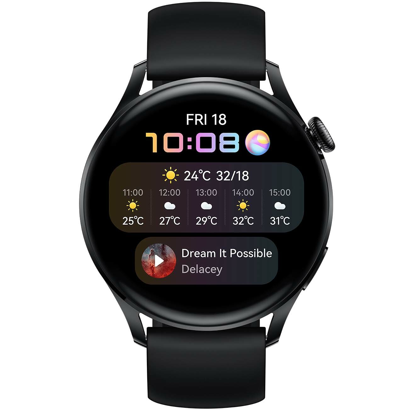 Huawei Watch 3 Galileo-L11E GLL-AL04 Black-Black Fluoroelastomer Strap 55026817 .