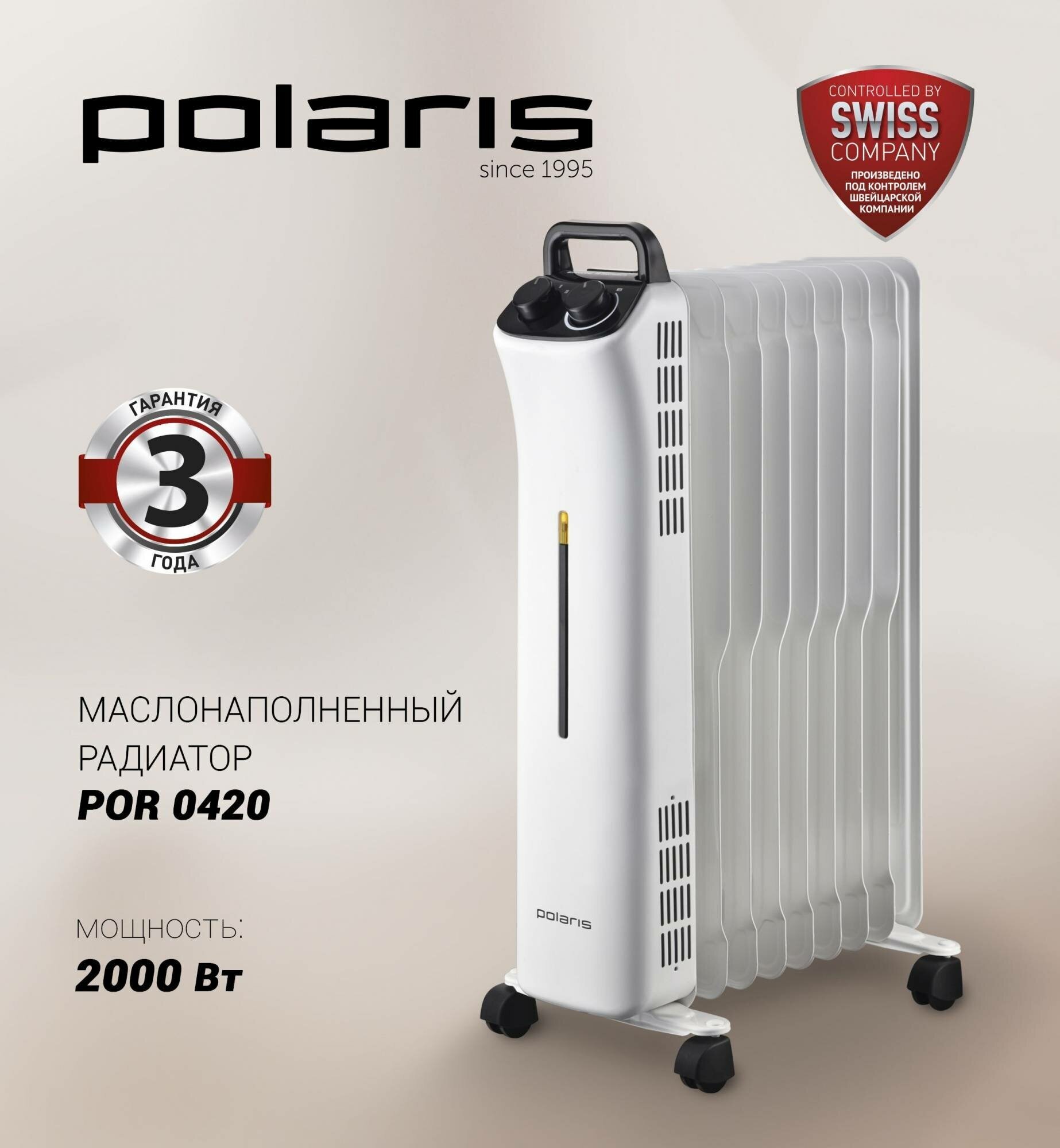 Масляный радиатор Радиатор масляный Polaris POR 0420, 9 секций, 2200 Вт, белый