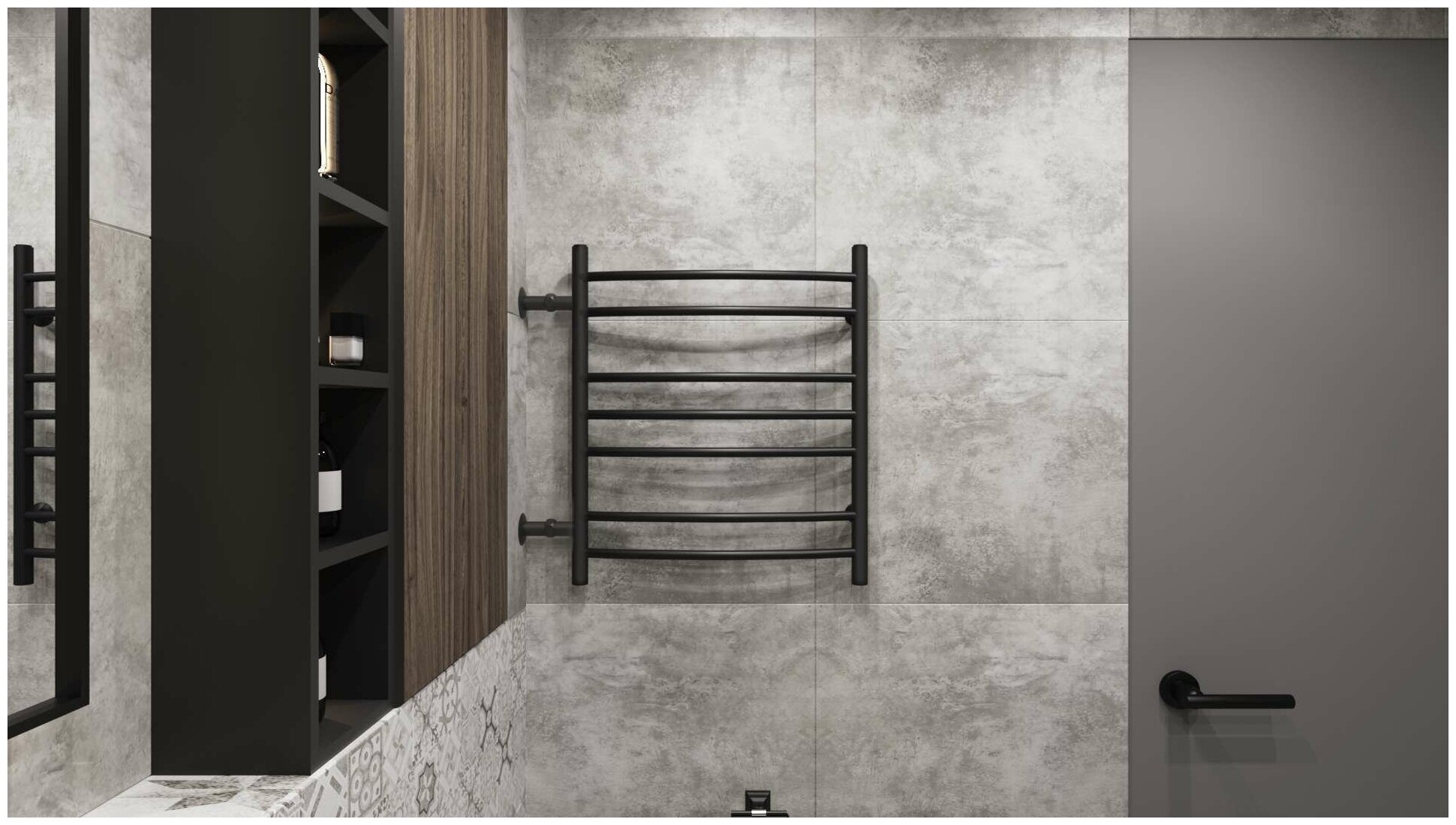 Полотенцесушитель Полотенцесушитель водяной ARIANO Палермо 70х53 боковое подключение черный матовый, 7 перекладин, прямые американки 1'x3/4' в комплекте