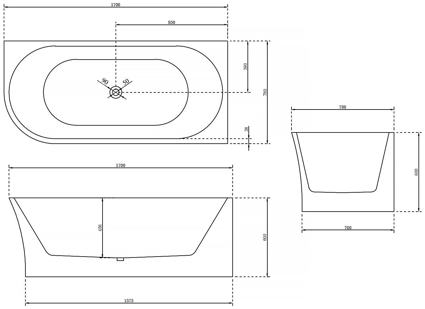 Ванна ABBER AB9257-1.7 R