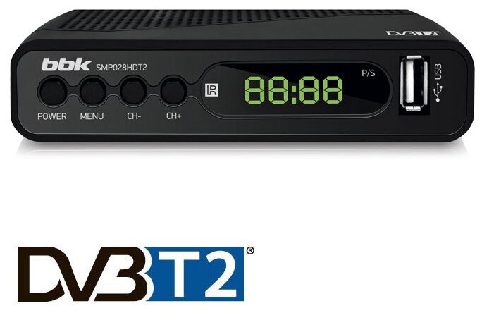 Лучшие цены. Ресивер DVB-T2 BBK SMP028HDT2 предназначен для приема каналов цифрового эфирного телевидения стандартов DVB-T, DVB-T2, MPEG-2/MPEG-4 и радио, а также обладает возможностями медиаплеера с поддержкой формата MKV. При условии достаточного уровня принимаемого сигнала прием может вестись с помощью обычной домашней антенны. Устройство поддерживает функцию EPG (Electronic Program Guide) - интерактивную программу передач, позволяющую посмотреть в любой удобный момент на экране телевизора расписание телепрограмм. Магазины в вашем городе.