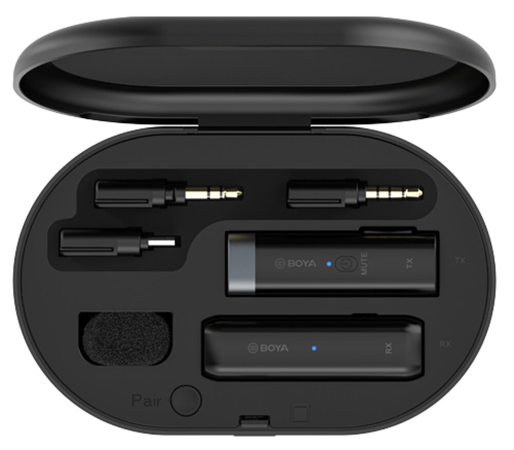 Микрофон Беспроводной компактный микрофон Boya BY-WM3D 2,4 ГГц, состоит из одного передатчика, портативного приёмника, зарядного чехла, совместим со смартфонами Apple