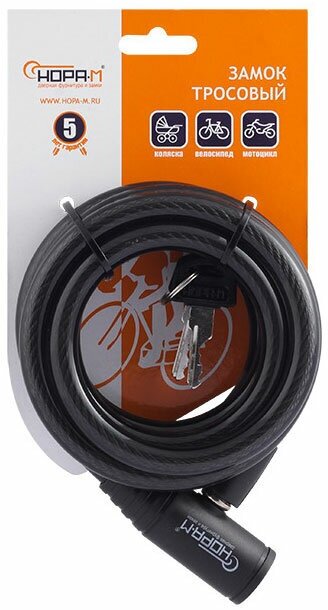 Велозамок / блокиратор Замок велосипедный Нора-М №24 10х1500 (противоугонный, стальной трос 10мм, длина 150см) - Черный
