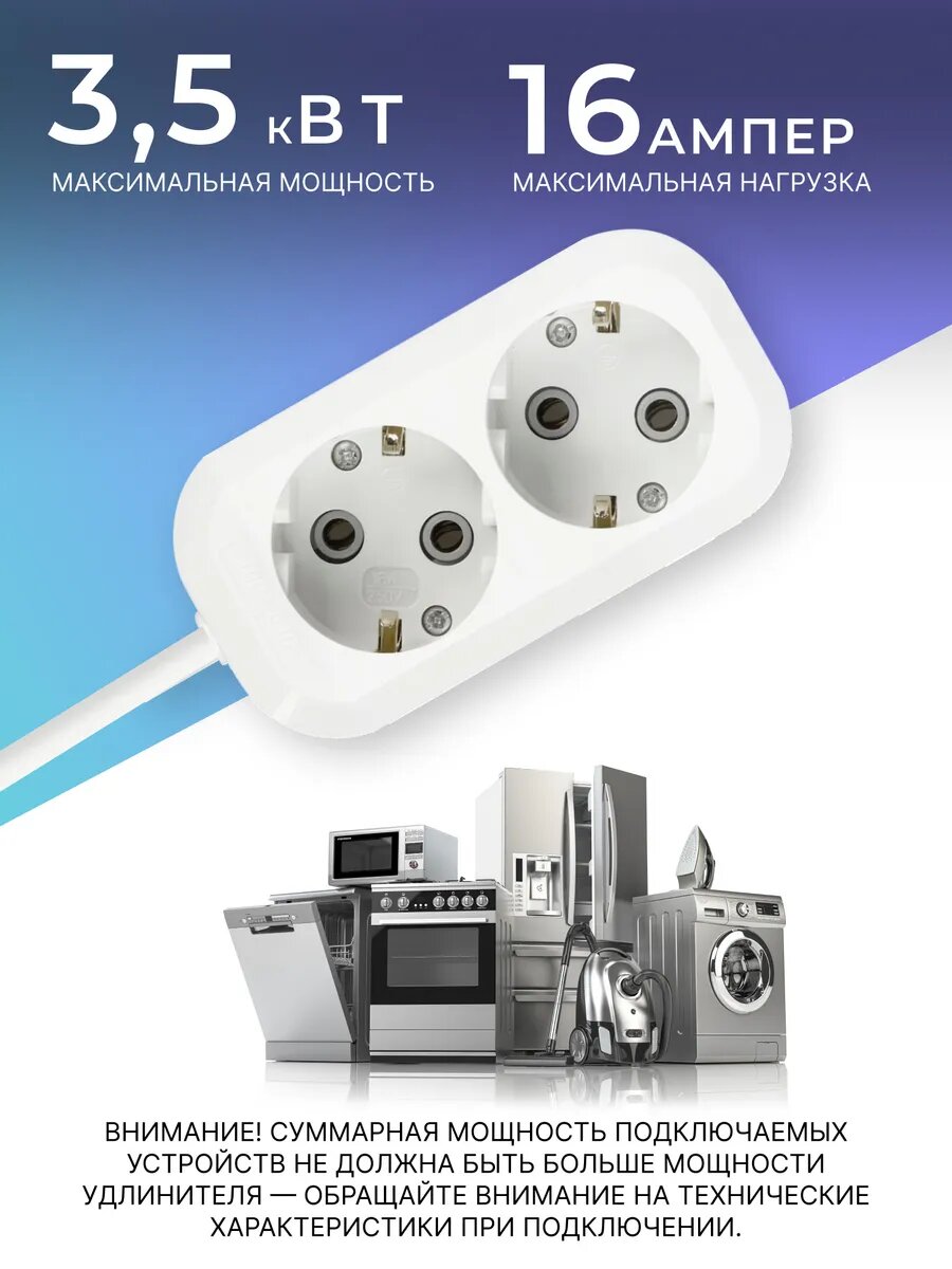 Удлинитель 3 розетки, 5 м, 6 А, 1300 Вт, ШВВП 2х0.5 мм2, без з/к, белый 5350219