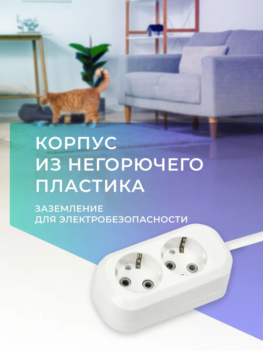 Удлинитель 2 розетки, 1.7 м, 6 А, ПВС 2х0.75 мм2, без з/к, белый