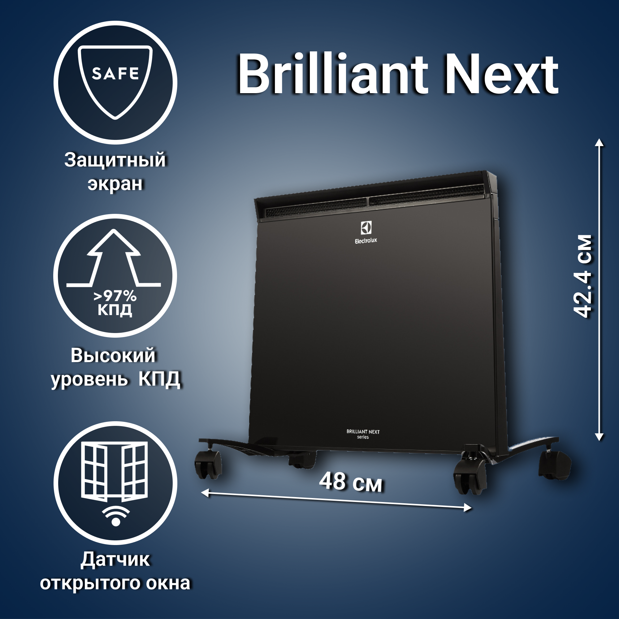 Конвектор Electrolux ECH/BNE-1500 Brilliant Next стеклокерамика, электронный термостат