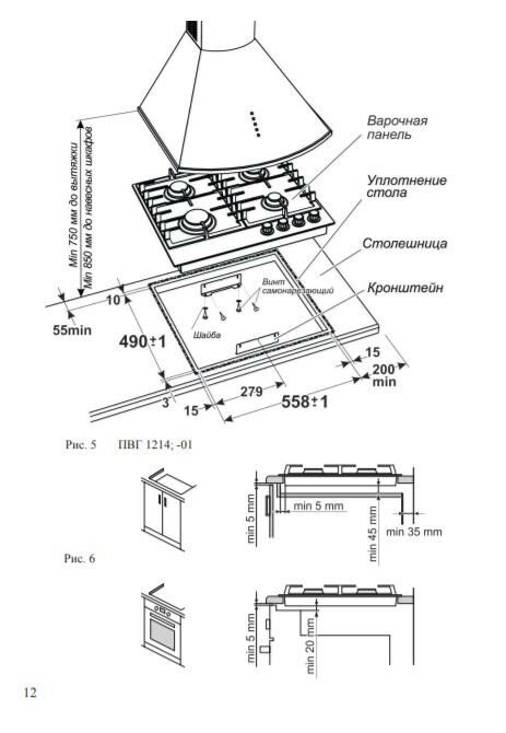 Встраиваемая независимая газовая поверхность Гефест ПВГ 1214-01 К55