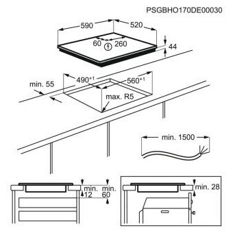 | Мощность конфорок | 1.2 кВт, 1.2 кВт, 0.75/2.2 кВт, 1.5/2.4 кВт |