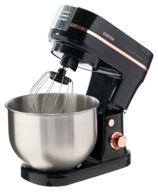 Миксер Centek CT-1130, планетарный, 1200 Вт, 5 л, 6 скоростей, 3 насадки, черный