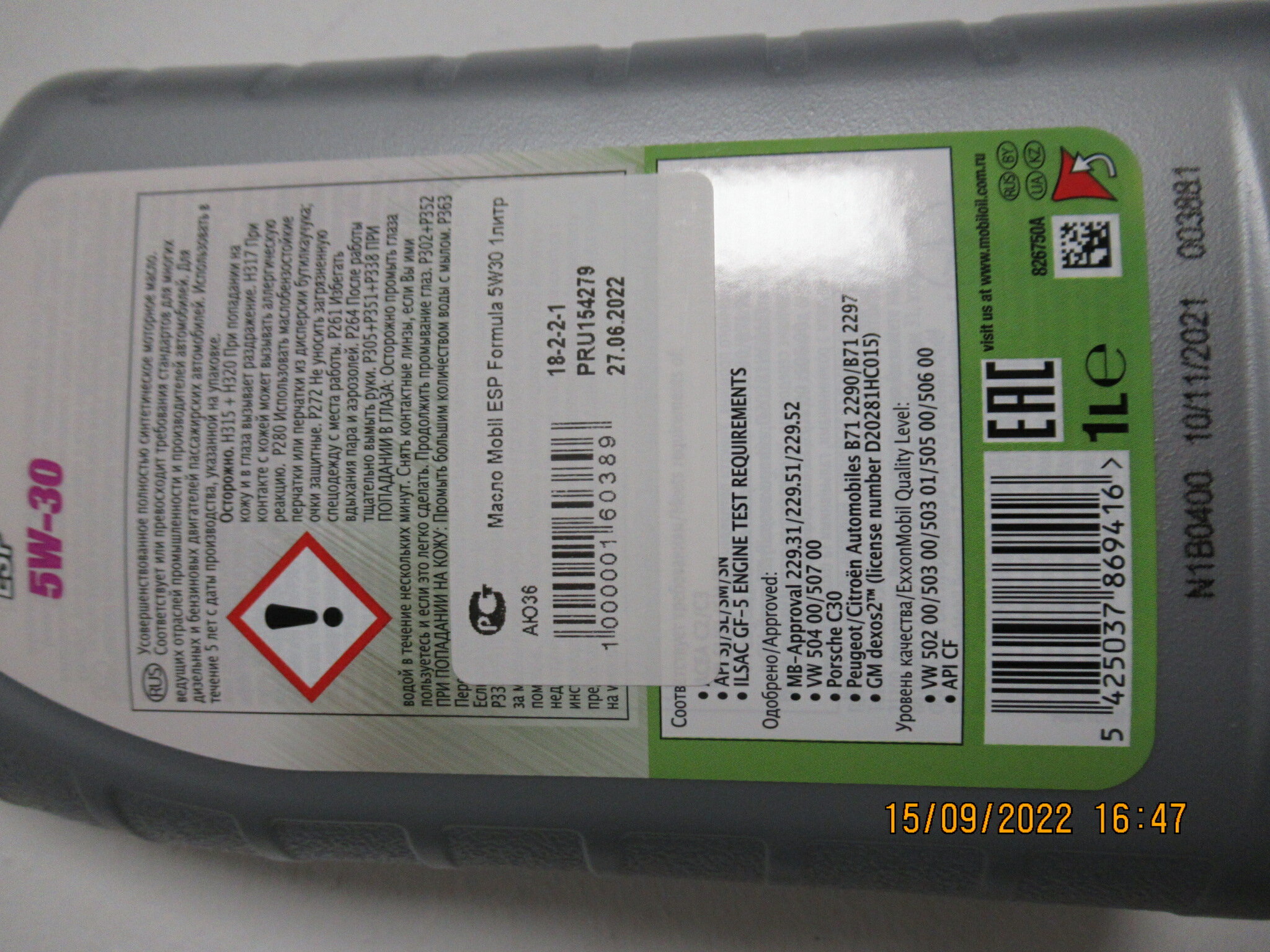 масло mobil mobil 1 esp 5w-30 sl c2/c3 20л