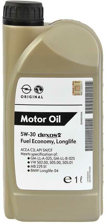 Синтетическое моторное масло GENERAL MOTORS Dexos2 Longlife 5W30, 1 л, 1 кг, 1 шт