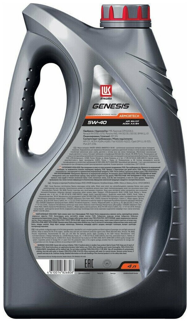 Синтетическое моторное масло ЛУКОЙЛ Genesis Armortech for European Cars 5W-40, 4 л