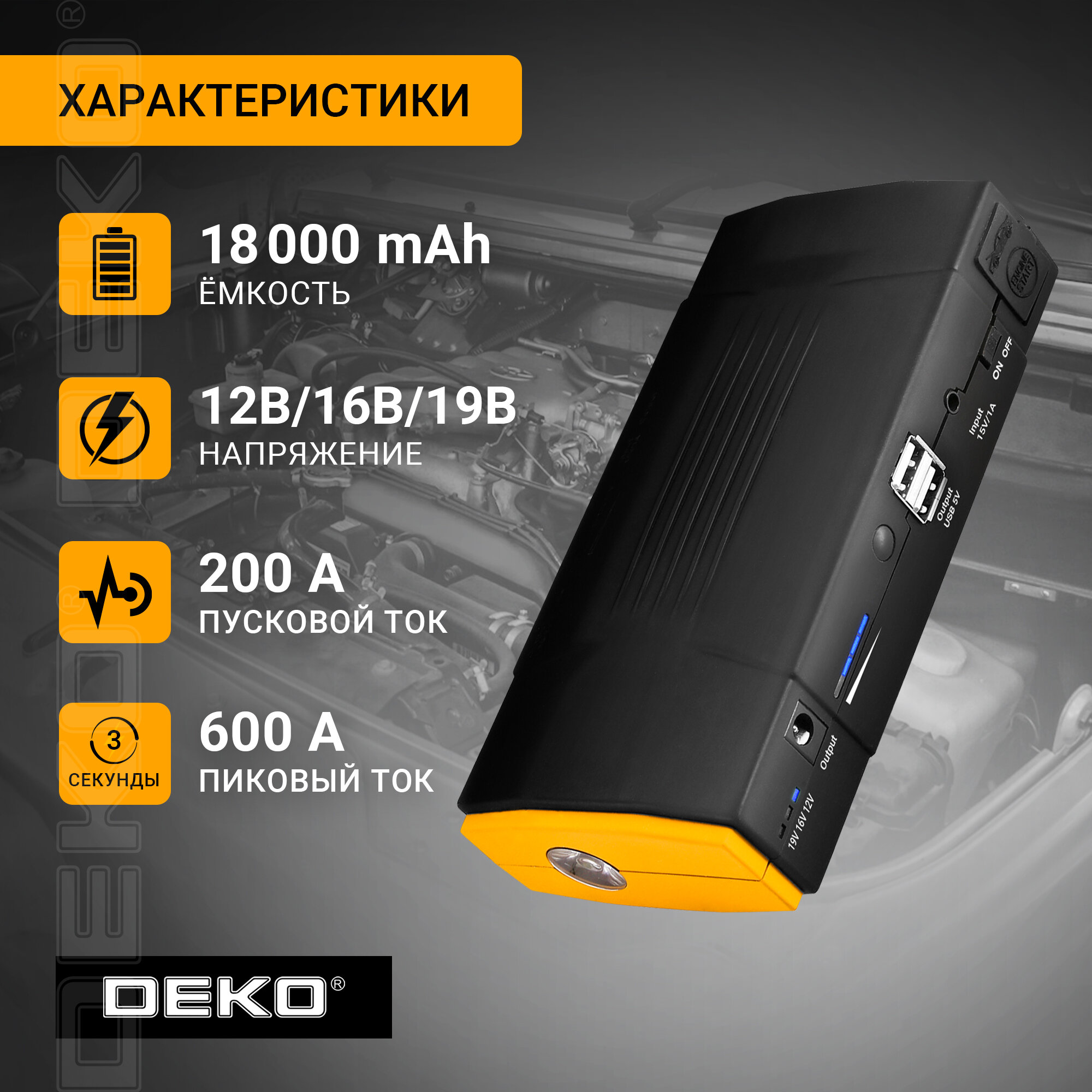 Пуско-зарядное устройство Пусковое устройство с аккумулятором на 18 000 mAh в наборе DEKO DKJS18000mAh auto kit