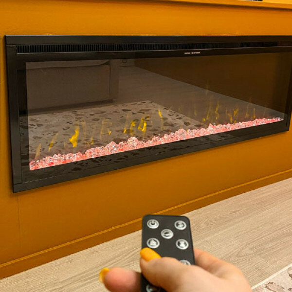 Линейный электроочаг Saphir 42, кристаллы, обогрев, пульт ДУ, электрический очаг