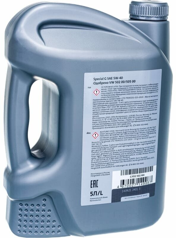 VAG G R52 502 M4 Масло моторное Special G 5W40 VW 502/505 5л 11 730 ₽ Подробнее