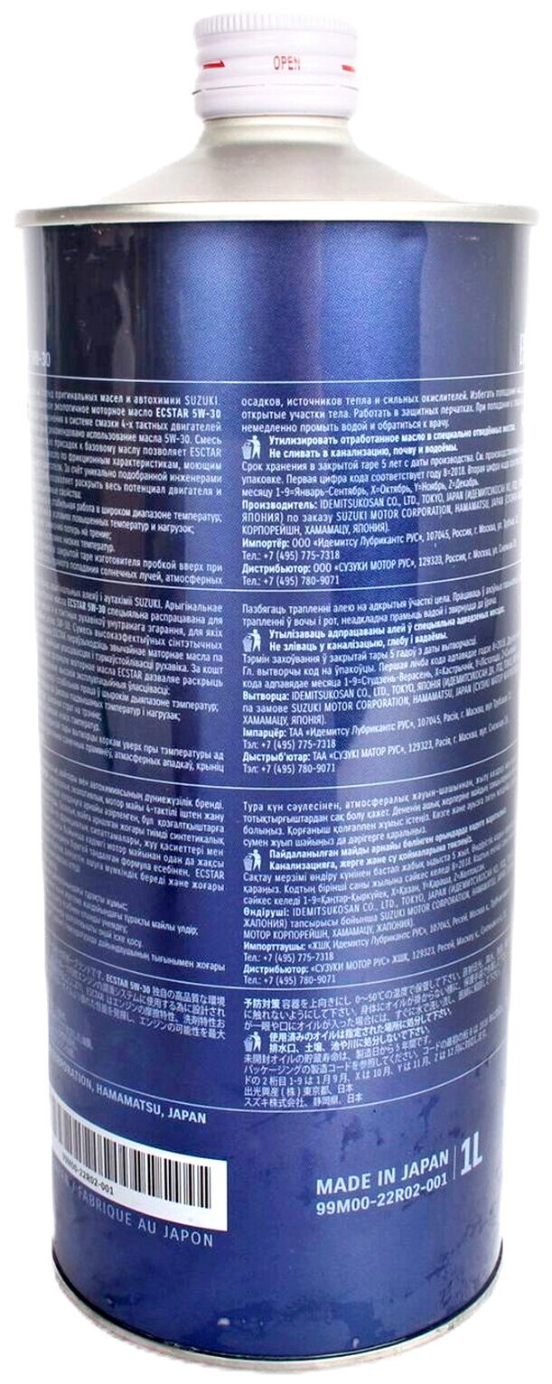 Масло Suzuki Motor Oil (Ecstar) 5W30 1 л 99M00-22R02-001 .