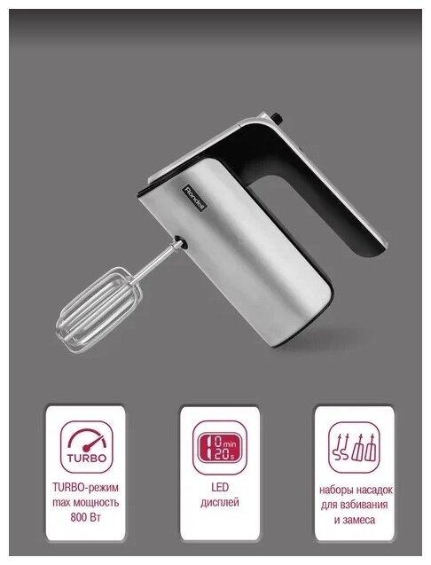 | Насадки | ножка-блендер, венчики для взбивания, нож для измельчителя, приготовление пюре |