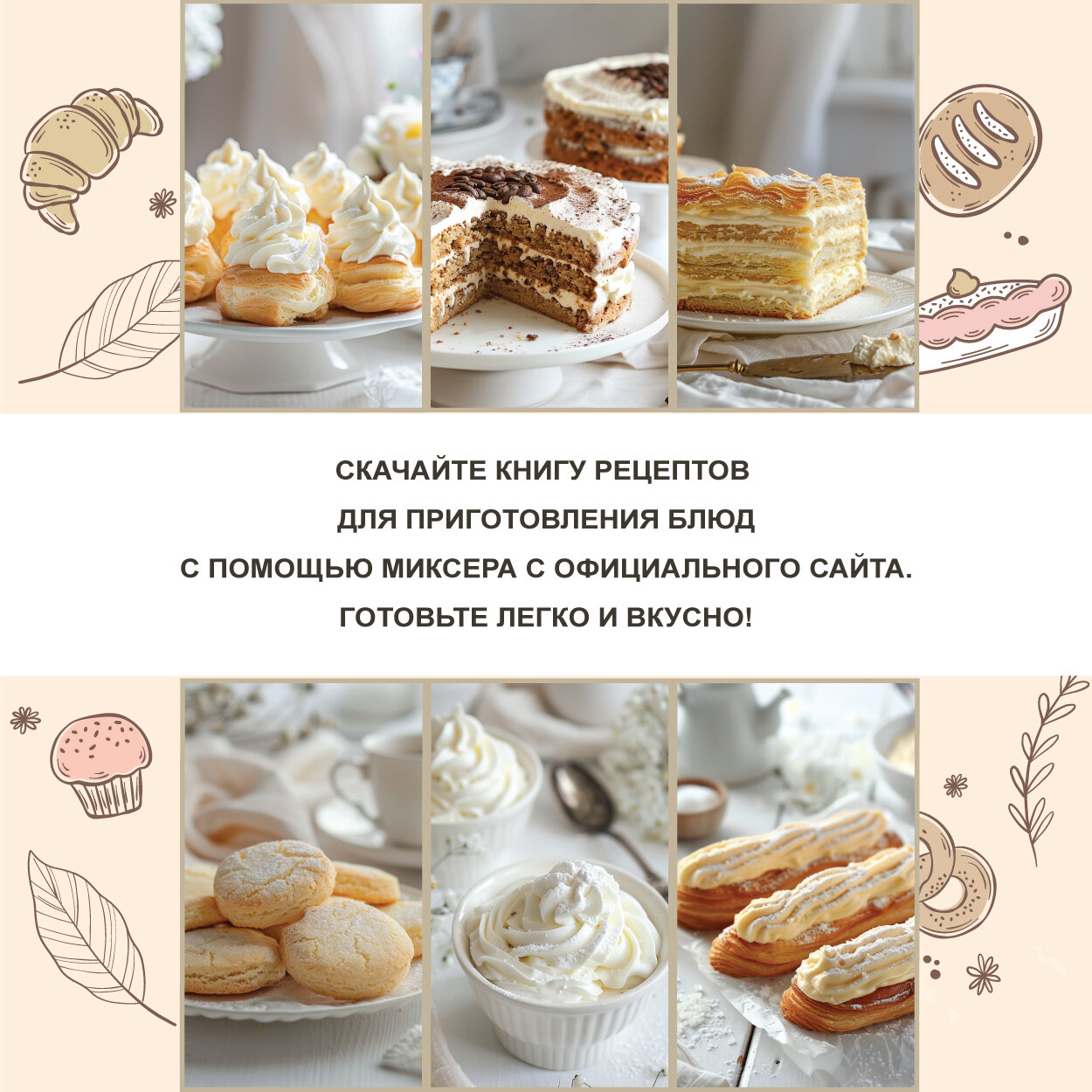 Миксер Компактный ручной миксер Pioneer MX325 с турборежимом, 5 скоростей, 4 насадки, 350 Вт