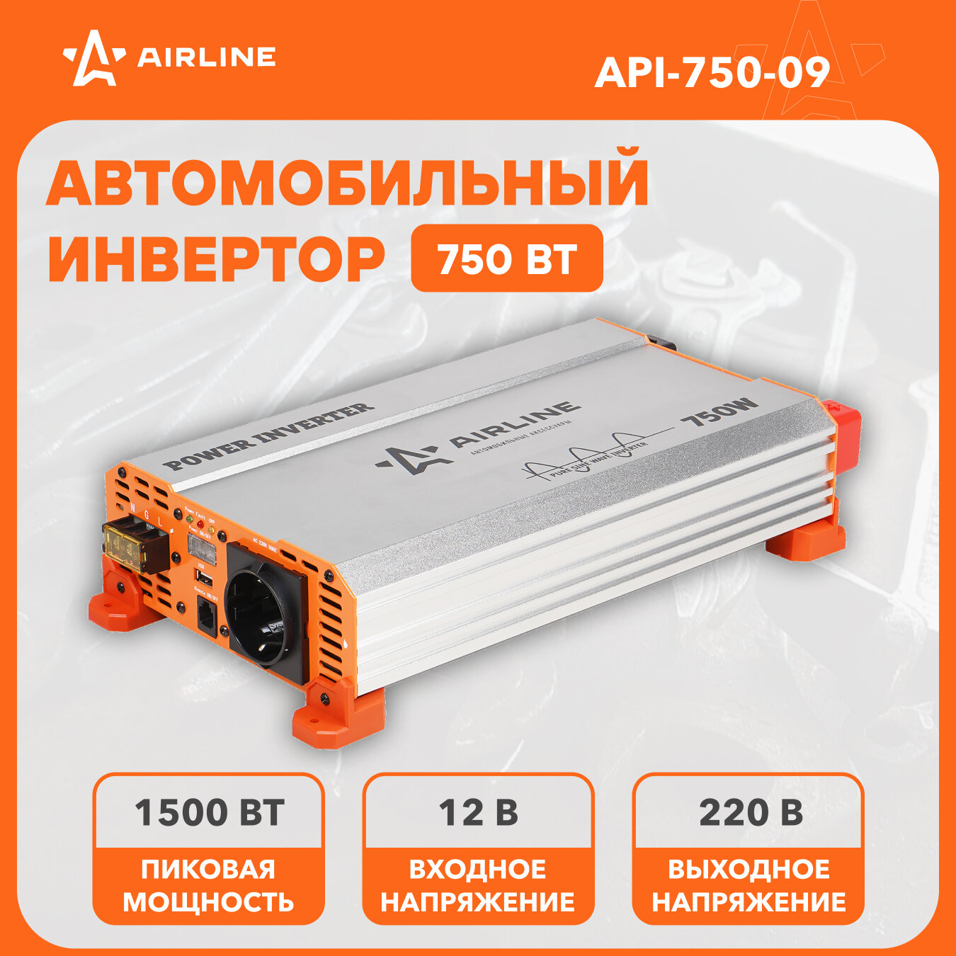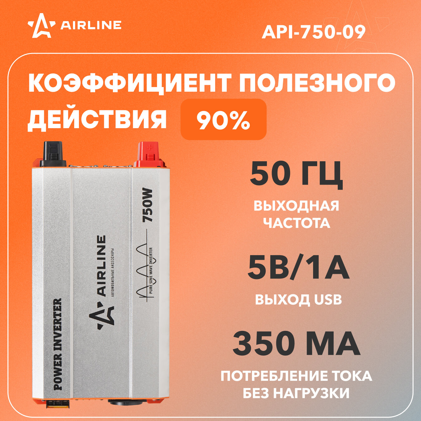 Airline API-750-09 (API75009) инвертор 12в-220в, 750 вт чистый синус (api-750-09)