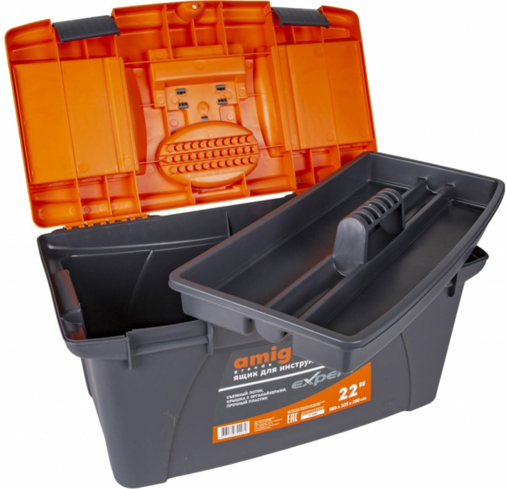 Ящик пластиковый для хранения инструмента 22" (56,5х32,5х29см) AMIGO 74780