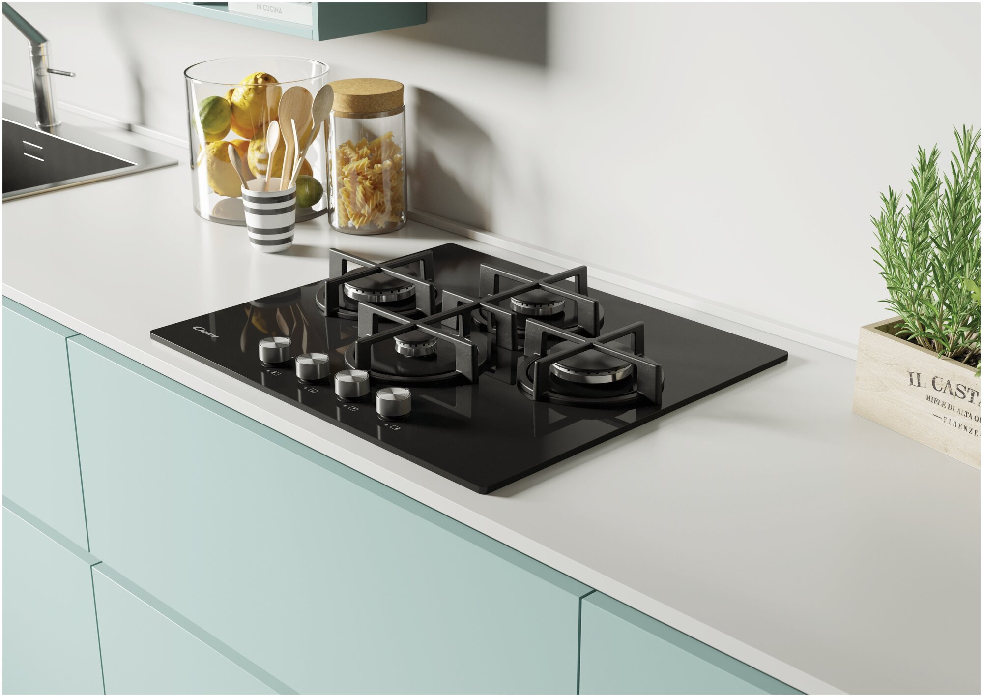 Лучшие цены. Газ на стекле. Цвет: Черный. Ширина: 60 см. 4 газовых конфорки. Автоматический электроподжиг. 3 решетки. Предохранительный клапан Sicur Flame (автоматически перекрывает подачу газа, если гаснет пламя конфорки) , 2 быстрые конфорки 2,5 кВт, 2 полубыстрых конфорки 1,75 кВт. Магазины в вашем городе.